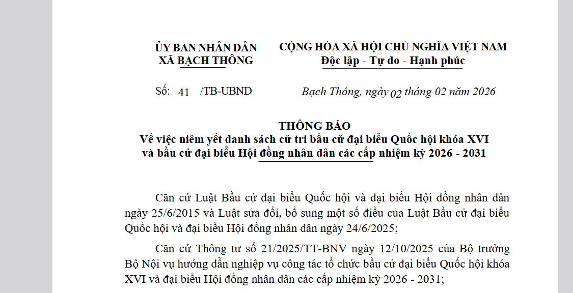 Thời gian qua, UBND xã Bạch Thông luôn xác định việc tiếp thu, trả lời và giải quyết kịp thời các ý kiến, kiến nghị của cử tri là nhiệm vụ trọng tâm, thể hiện trách nhiệm của chính quyền cơ sở trong phục vụ Nhân dân, góp phần nâng cao hiệu quả quản lý nhà nước và củng cố niềm tin của Nhân dân đối với chính quyền địa phương.
